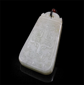 和田白玉牛頭紋掛件