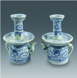 青花纏枝花卉紋油燈一